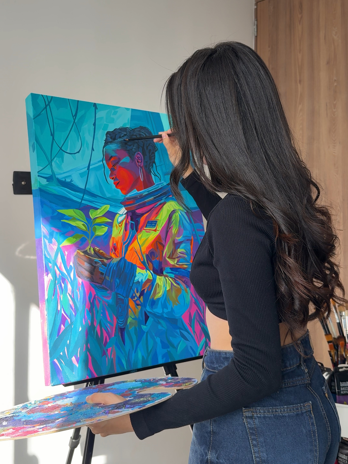 Explore the collection of acrylic paintings on canvas by Nathaly Cajigas, each created with dedication to convey emotion, depth, and energy. Her works blend color, symbolism, and technique, transforming any space into a unique artistic experience.